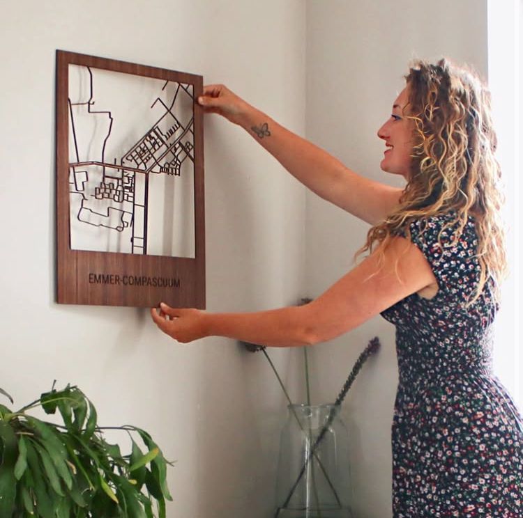 Als stolzer „Doarper” begann ich sofort mit der Herstellung einer Stadtkarte aus Holz für mein eigenes Dorf: Denekamp. Ein Dorf direkt an der deutschen Grenze und Nordhorn.